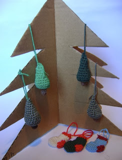 Estos adornos, el belén, y broches, y móviles para cunas y juguetes y llaveros y gorros y más estarán en persona, en vivo y en directo este fin de semana en el mercadillo Ciento y Pico, en la calle Velarde número 14, en Malasaña (Madrid), ¡os espero!